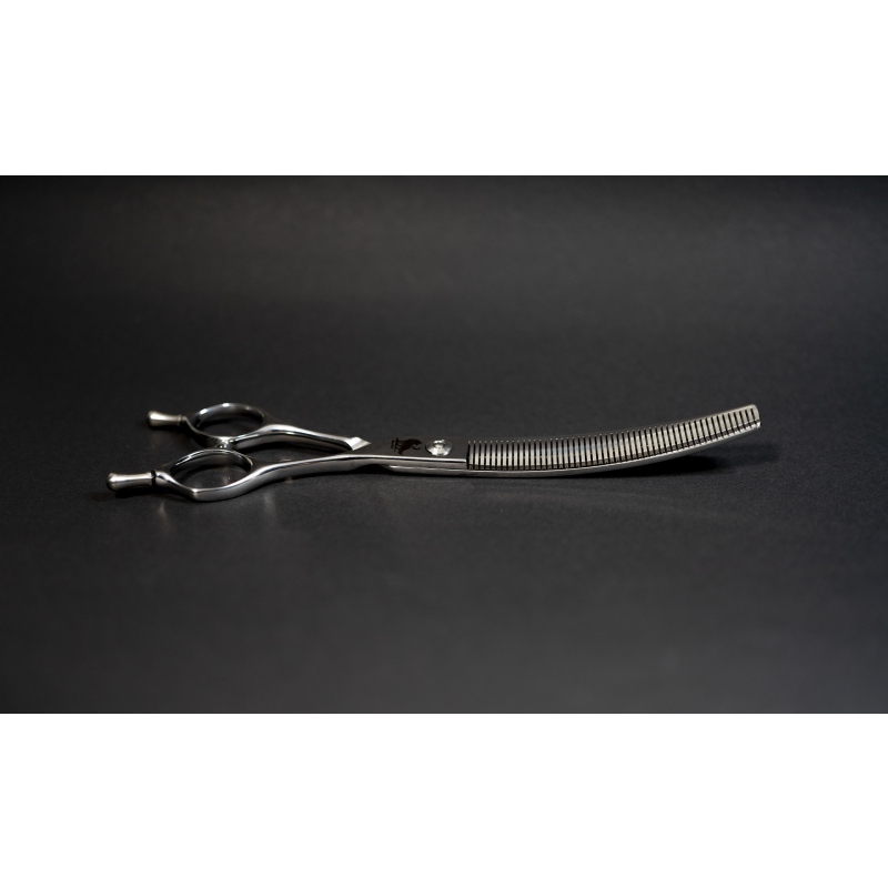 Den 7-tums DG70-52 böjda effileringssax är en unik modell i BlackWolfs kollektion! De har en 35° vinkel, vilket gör dem exceptionellt smidiga och precisa. Denna vinkel gör DG70-52 böjd effileringssax perfekt för precisa klippningar i områden som perfekt rundade nospartier. De är det perfekta valet för finjusteringar och borttagning av större mängder päls, där precis klippning är avgörande.